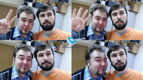 Двойная съемка. В этом режиме экран делится на две половинки, ползунок между ними позволяет сделать одну из половинок крупнее, а другую – уже. На одной половине экрана изображение с фронтальной камеры, на другой – с основной. Можно делать фотографию с двух камер сразу, а можно попеременно. Фотокиоск. Режим предназначен только для фронтальной камеры, и в нем вы делаете серию из четырех автопортретов, затем снимки склеиваются в один кадр, квадратный, прямоугольный или вытянутый в ширину. Мне этот режим показался очень классным, казалось бы, ничего особенного, но для того, чтобы подурачиться и сделать серию фотографий, особенно с любимым человеком или друзьями, подходит просто отлично.