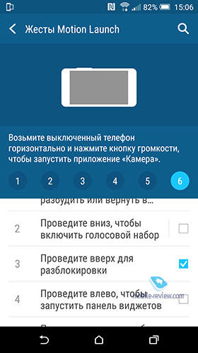 Одна из главных фишек управления – технология Motion Launch. Информация со всех датчиков передается на специальный сопроцессор, и любое приложение получает эту информацию сразу, без опроса каждого датчика. Во-первых, это позволяет немного экономить заряд батареи, во-вторых, реализовывать новые способы управления. Благодаря Motion Launch в M9 есть разные варианты разблокировки экрана без клавиши питания. Двойной тап по дисплею приведет вас к экрану блокировки, «свайп» пальцем слева направо – к экрану BlinkFeed, справа налево – к главному экрану, сверху вниз – в голосовое управление, снизу вверх – вы попадете на тот экран, на котором заблокировали устройство (игра, меню приложений, какая-то запущенная программа и так далее). Все эти действия аппарат лучше всего различает, когда вы держите его в руке в вертикальной ориентации, хотя, если повернуть его в ландшафтный режим, то они также будут работать, хоть и не столь четко (все, кроме двойного тапа, он работает отлично). Кроме того, любой из вариантов разблокировки можно отключать в настройках экрана, если он вам мешает.