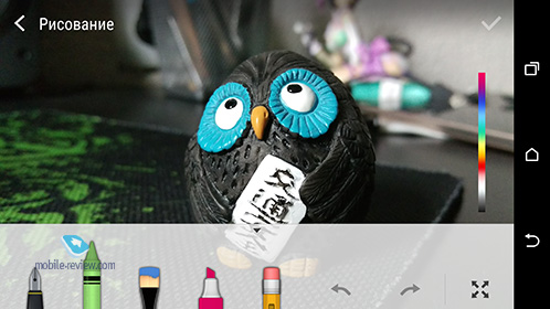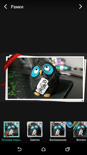 Сделанные в режиме «Авто» кадры поддаются наибольшему количеству изменений: можно добавлять различные графические эффекты, накладывать одно изображение поверх другого, делать коллажи или даже просто рисовать поверх фотографии от руки. По количеству настроек картинки встроенный в HTC One M9 редактор сравним с доступными в Google Play платными приложениями.