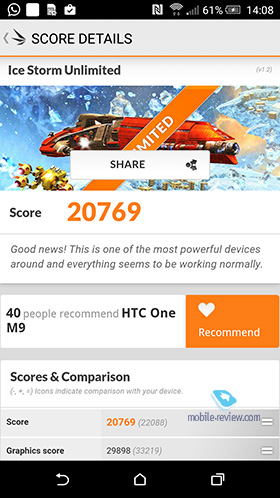 HTC One M9 – одно из первых поступивших в продажу устройств на новейшей платформе от Qualcomm. Помимо M9, на этом чипсете построены LG G Flex 2, Xiaomi Mi Note Pro и, возможно, LG G4 и Sony Xperia Z4. Вопросов по производительности к устройству нет. Все, от оболочки и запуска программ до игрушек вроде GTA San Andreas, на максимальных настройках графики работает быстро и без малейших задержек. Ниже приведены результаты тестов HTC One M9 в различных бенчмарках, добавить мне, если честно, просто нечего. Смартфон максимально быстрый. Теперь про нагрев. Это одна из проблем чипсета Snapdragon 810, по крайней мере, если судить по новостям в сети. В M9 нагрев (информация берется с аккумулятора) составляет около 45-46 градусов, если примерно полчаса играть в San Andreas на максимальных настройках графики, запустив в фоне стресс-тест, встроенный в бенчмарк Antutu. Корпус смартфона при этом ощущается очень теплым. Если смотреть на показатели нагрева, то есть аппараты, где эти значения на 5, а то и 10 градусов выше, но взяв данные смартфоны в руку, вы не ощутите такого нагрева корпуса, как с M9. Причина в алюминии. Там, где другой аппарат из пластика сохраняет часть тепла внутри, M9 принимает все на алюминиевую основу корпуса, и, собственно, вы, держа смартфон в руках, чувствуете те самые 45 градусов, которые в другом устройстве лишь частично передаются на пластиковый корпус. При ежедневном использовании нагрев практически не ощущается. Если включить Wi-Fi и начать обновлять 30 приложений из Google Play, нагрев будет заметен, но, опять же, как часто вы обновляете на смартфоне 20-30 программ одновременно? Думаю, не слишком часто. ИнтерфейсыСмартфон работает в сетях GSM (850/900/1800/1900), HSDPA (850/900/1900/2100) и LTE FDD полосы 1, 3, 5, 7, 8 20, 28 и TDD полосы 38, 40, 41. LTE работает в том числе в России. Включать и выключать беспроводные интерфейсы можно через настройки или добавив на главный экран один из нескольких виджетов, а также с помощью шторки уведомлений, в которой есть удобное меню с возможностью вывода на основной экран именно тех переключателей, которые вам нужны.