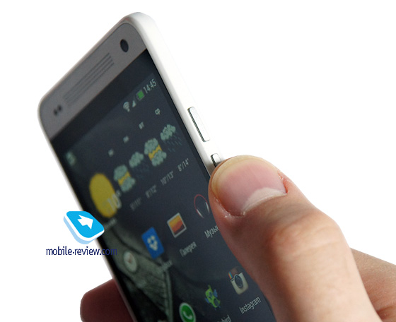 Обе кнопки удобны, вибрируют при касании и имеют подсветку, которая включается автоматически при недостатке освещения вокруг. Клавиша питания расположена слева, на верхнем торце, нажимать ее удобнее, чем на более крупном HTC One, но все равно, на мой взгляд, лучше бы ее разместили на ребре устройства. Разъем 3.5 мм для подключения наушников расположен также на этом торце.