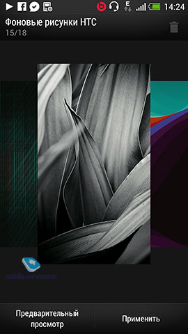Отдельно хочу отметить просто шикарные картинки рабочего стола из стандартного набора фоновых картинок HTC. На мой вкус здесь одно изображение лучше другого, лично у меня это первый смартфон, где я уже месяц использую только стандартные фоновые картинки.