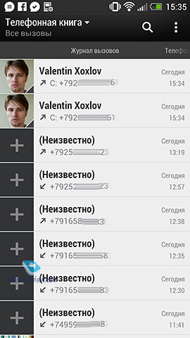 На мой взгляд, если раньше меню было просто «складом» для всех ярлыков, то теперь это полноценный аналог рабочего стола, только если на рабочем столе помещается фиксированное число элементов здесь их можно разместить сколько угодно и перемещаться между ними скроллом вверх и вниз. Стандартные приложенияТеперь коротко пройдемся по стандартным предустановленным в HTC One программам. Я постараюсь не описывать каждое приложение от и до, а только расскажу вам об интересных, на мой взгляд, возможностях той или иной программы. Адресная книга. Изменения в основном косметические – поменялся вид вкладок, список стал контактов стал более строгим и аккуратным. В карточке контакта по-прежнему половину экрана занимает фотография человека. При входящем или исходящем звонке фото также расположено примерно на половину экрана.
