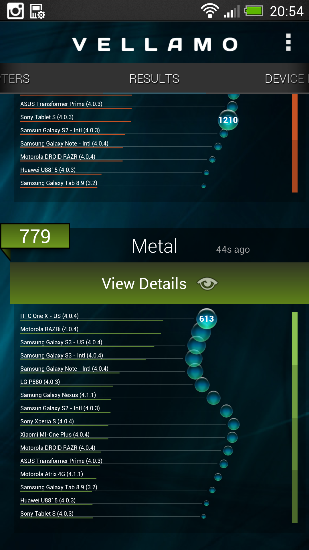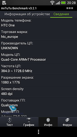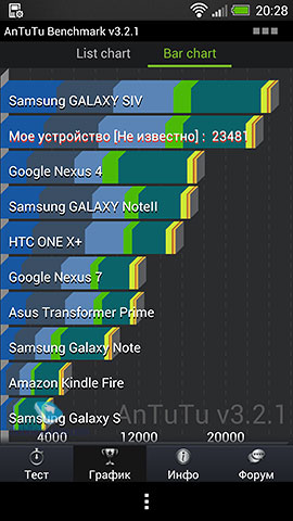 Производительность, тестыОбщая скорость работы HTC One отличная: рабочие столы перелистываются моментально, задержек и подлагиваний при запуске приложений и переключении между ними нет. При большом числе запущенных программ смартфон не начинает работать медленнее или задумываться. Ниже приведены результаты тестирования HTC One в различных бенчмарках. Для оценки производительности в играх я запускал на HTC One: GTA: Vice City, Nova 3, Dead Trigger и пару других игрушек. Все игры на смартфоне идут плавно, без подтормаживиний и подвисаний. Загружая на смартфон игры нужно быть готовым к тому, что некоторые из них (думаю, пока еще многие) не оптимизированы под столь высокое разрешение и картинка в них будет просто растягиваться системой на весь экран.