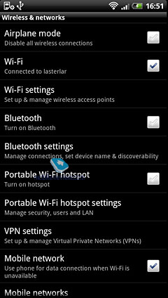 ![]() ИнтерфейсыАппарат работает в сетях GSM (850/900/1800/1900) и UMTS (900/2100). Поддерживаются оба стандарта высокоскоростной передачи данных – EDGE и HSDPA. Включение и отключение разных модулей связи можно производить в меню настроек, или с помощью виджетов. Есть виджет с полоской иконок для переключения интерфейсов, есть отдельные виджеты-кнопки, а также стандартный виджет ОС Android.