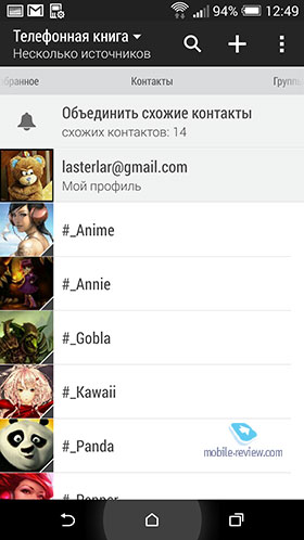 В целом, изменений в сравнении с Sense 5, как видите, немного: упростили меню программ, добавили возможность выбора шрифта, возможность выбора картинки для экрана блокировки. И этого достаточно, лично мне именно этих вещей не хватало в Sense 5. Стандартные приложенияТеперь поговорим о стандартных приложениях, установленных в HTC One (M8) и являющихся частью оболочки HTC Sense 6. Адресная книга. Изменений в сравнении с приложением в пятой версии Sense почти нет – разве что оформление цифровой клавиатуры изменилось. В карточке контакта треть экрана занимает фотография человека, при входящем или исходящем звонке фото также отображается практически на половину экрана.