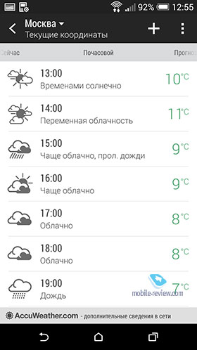 Погода. Приложение почти не претерпело изменений, здесь отображается прогноз с динамичной графикой на сегодняшний день, а также детальный прогноз на день и на последующие дни.