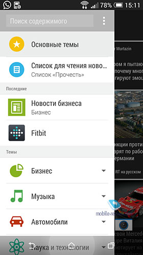 HTC BlinkFeedГлавное, что было добавлено в BlinkFeed еще до появления Sense 6 – возможность удалить рабочий стол с этим сервисом с экрана. В остальном серьезных изменений нет. Это по-прежнему «агрегатор» новостей из разных источников: сайтов и социальных сетей. Новости проходят через сервер HTC, ужимаются, переформатируются и только затем попадают на экран смартфона. Сделано это для снижения расходов трафика сервисом, а также для повышения скорости его работы. Новости отображаются на главном экране в формате плитки, чем-то это напоминает интерфейс Windows Phone. Плитка может быть крупнее или меньше, в зависимости от доступной для новости картинки. Выглядит лента новостей в целом красиво и аккуратно при условии подбора удачных источников, однако иногда все еще попадаются новости с картинками низкого разрешения.