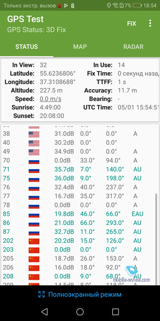 Остальное стандартно для любого Android-смартфона: Wi-Fi b/g/n с одним диапазоном, Bluetooth 4.2, USB 2.0 c поддержкой OTG. Присутствуют навигация A-GPS, GPS и ГЛОНАСС. На сайте не сказано, но 7A Pro поддерживает еще и BeiDou (китайская спутниковая система навигации). Точность от 9 метров, чувствительность очень высокая: даже в здании легко «видит» до 5 спутников (в видимости до 25), на открытой местности работает с 15 спутниками (в видимости - до 35).