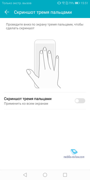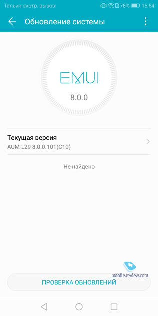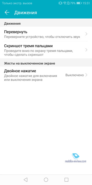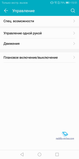 Устройство функционирует на операционной системе Google Android версии 8.0, фирменная оболочка – EMUI 8.0. Каких-то специфических особенностей среди программного обеспечения нет. Присутствуют только: управление одной рукой, движения (повернуть, скриншот тремя пальцами, двойное нажатие для активации подсветки экрана) и плановое включение/выключение.