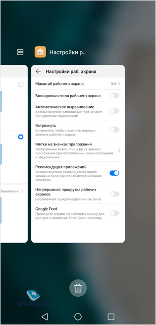 В пункте «Рабочий экран и обои» выбирается надпись для экрана блокировки. Она будет отображаться слева внизу. В этом же разделе активируется опция «Отображение шагомера». Он тоже показывается слева внизу при включении подсветки. Свайп слева-направо и наоборот – переходы по обоям экрана блокировки. Вы можете зафиксировать одну из них, удалить, добавить в избранное, поделиться с вашими контактами и социальными сетями, а также перейти в настройки. Свайп вверх с правого нижнего угла запускает камеру. Свайп снизу – панель с «быстрыми приложениями»: диктофон, фонарик, калькулятор и таймер. Кроме того, на экране блокировки отображаются уведомления с краткой информацией. Свайп влево или вправо – удаление уведомления с экрана блокировки. Свайп вверх в любом месте экрана – это переход на рабочий стол. Рабочий столВ данном случае необходимо сразу рассказать о том, что в EMUI есть выбор системной навигации: