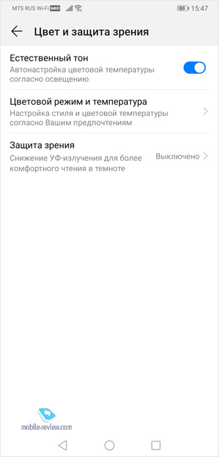 Меню «Экран». В нем сократили несколько пунктов, оставив только основные и важные. В разделе «Цвет и защита зрения»: