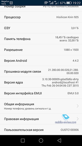 Софт, EMUI 3.0Смартфон работает под управлением Android 4.4, в качестве оболочки используется фирменная Emotion UI, или, как ее теперь называют, EMUI версии 3.0. По общей логике оболочка напоминает MIUI и Flyme, а корнями уходит, соответственно, к iOS – здесь нет отдельного меню приложений, все программы собираются на рабочих столах.