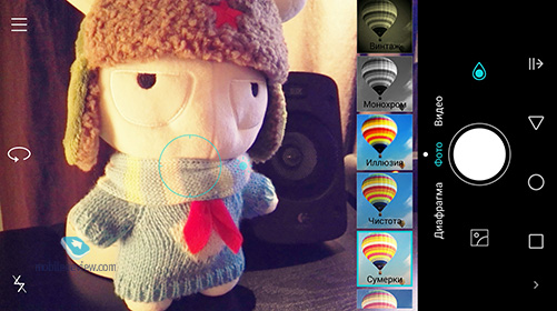 Интерфейс камеры простой и понятный. Переключение режимов, включение HDR и другие настройки первой необходимости собраны на одном экране, он вызывается по клику на клавишу параметров. Более детальные настройки можно открыть также кликом по кнопке параметров уже в этом окне. Главная изюминка решения с двумя равноценными модулями камер – возможность делать снимки, программно регулируя значение диафрагмы в пределах от f/0.95 до f/16, то есть меняя глубину резкости. Соответственно, на малых значениях можно получить какой-то один четкий объект (в идеале – плоский) и красивое размытие фона для всего остального кадра. На максимальных значениях резким будет весь кадр. Прелесть этой опции в Huawei Honor 6 Plus заключается в том, что достаточно выбрать режим съемки «диафрагма» и делать снимки, не заботясь для каждого кадра о том, какое значение диафрагмы выбрано. Все снятые в данном режиме фотографии можно отредактировать позднее, установив для каждой оптимальное значение диафрагмы.