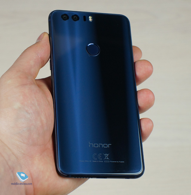 ПозиционированиеВ июле этого года был анонсирован смартфон под названием Honor 8 (саб-бренд Huawei). Как мне кажется, устройство, прежде всего, интересно с точки зрения внешнего вида: с лицевой и тыльной стороны используется стекло с зеркальным эффектом и закруглением 2.5D, боковые грани сделаны из металла, а также присутствуют несколько ярких цветовых решений. Естественно, лучше один раз увидеть, чем прочитать о Honor 8 в тексте или посмотреть на него в интернете. С точки зрения технических характеристик здесь все отлично: и мощный процессор, и «море» оперативной памяти, и емкая батарейка. Отдельно стоит упомянуть, что Honor 8 досталась от Huawei P9 двойная камера. Конечно, она попроще, однако основные функции выполняет хорошо: размывает задний план и расширяет динамический диапазон. Позиционирование этой модели простое – флагман среди линейки Honor для тех, кому интересны не только параметры, но и дизайн устройства. Смартфон Honor 8 с 32 ГБ встроенной памяти стоит 28 000 рублей, с 64 ГБ – 30 000 рублей. Дизайн, размеры, управляющие элементыМогу уверенно сказать, что новинка является самой красивой среди всех смартфонов линейки Honor, если не среди всех гаджетов компании Huawei. Да, в ней прослеживаются некоторые черты Samsung Galaxy S6/S7, в частности, зеркальная «спинка», однако она выполнена даже более оригинально, если мы говорим о рисунке и зеркальном отражении. У меня на тесте была версия синего цвета – изумительный колор, который не теряет яркости ни на свету, ни в тени. Например, мой Samsung Galaxy S6 изумрудного цвета при недостаточных условиях освещения казался черным, а на свету – бледно-зеленым.