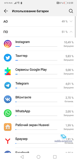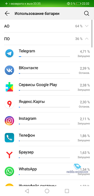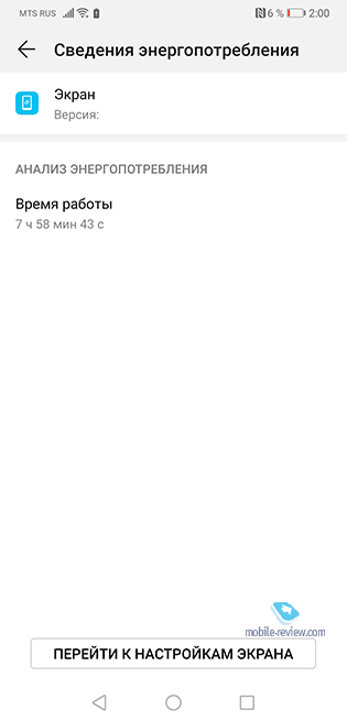 Время работыУстройства компании Huawei редко комплектуются слабенькими аккумуляторами, поэтому в Mate 20 мы видим батарейку на 4000 мАч (в старшей версии на 200 «махов» больше, хотя и экран меньше). Время работы в первые несколько дней меня просто поразило: 8 часов свечения экрана на автоматической яркости и около 36 часов работы телефона. Далее по неизвестной мне причине время свечения экрана уменьшилось до 6 часов при тех же задачах, а сейчас в диспетчере аккумулятора этот показатель составляет 5 часов. Странная тенденция.
