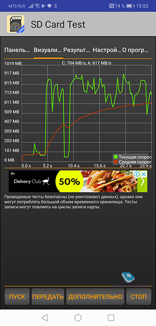 Для тех, кто окружил себя большим количеством бытовой техники, компания Huawei решила оставить ИК-передатчик. В телефоне есть специальное приложение, которое позволяет настроить почти любую технику на взаимодействие с Mate 20. Наверное, удобно, но мне комфортнее все же найти пульт ДУ и уже при помощи него управлять техникой (благо у меня всего лишь кондиционер и телевизор, который я включаю раз в неделю). Память, процессор и ПОРазработчики, а может быть, и маркетологи, решили, что 128 ГБ встроенной памяти должно хватать любому пользователю, поэтому столько памяти мы видели в P20 Pro, а сейчас наблюдаем в Mate 20/20 Pro. В принципе, можно поставить nanoSD-карту, но для начала ее надо будет найти в продаже. Скорость встроенной памяти составляет 617/188 МБ/с (чтение/запись): чтение – очень высокий результат, а запись не очень.