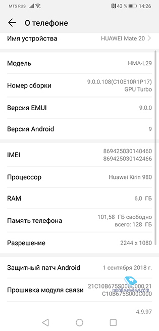 Если говорить просто и понятно, то Huawei Mate 20 работает ну очень быстро: никаких задержек, никаких лагов или микролагов. Если сравнивать его с P20 Pro, то Mate 20 однозначно быстрее. Смартфон функционирует на ОС Google Android версии 9.0 и фирменной оболочке EMUI 9. Подробно о системе рассказывать не буду, поскольку постараюсь написать обзор ОС. Однако хочется снова напомнить о тех багах, которые кочуют еще с EMUI 8: При получении сообщения сверху вылетает меню, при его смахивании весь интерфейс передергивает (проверял на трех коммерческих P20 Pro и Mate RS); При получении сообщения на экране блокировки нельзя раскрыть это самое сообщение для получения более подробной информации. В остальном Mate 20 с точки зрения поведения UI демонстрирует отличный результат.