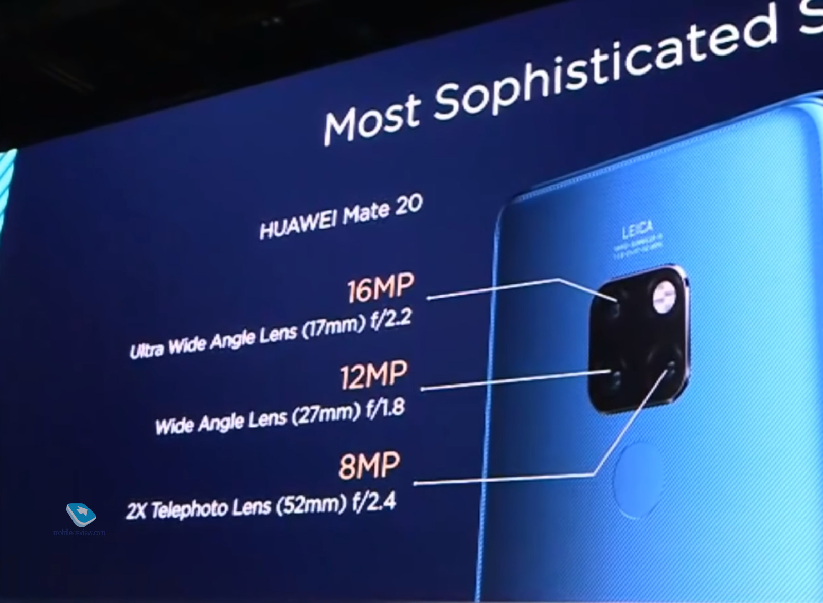 Итак, в Mate 20 используются три сенсора и с разными объективами: