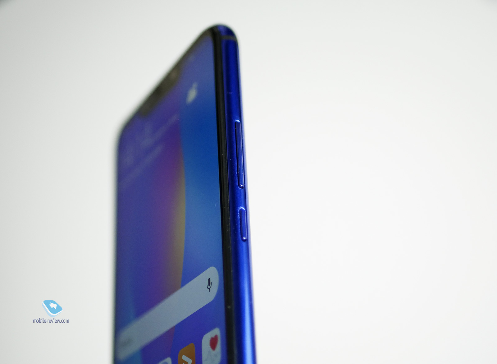 Металлическая рамка окрашена в синий цвет, тоненькая пластиковая амортизирующая вставка по периметру экрана черного цвета, собственно, как и вся лицевая панель. В выключенном состоянии вырез в верхней части экрана совершенно незаметен. На мой взгляд, такое решение выглядит отлично.