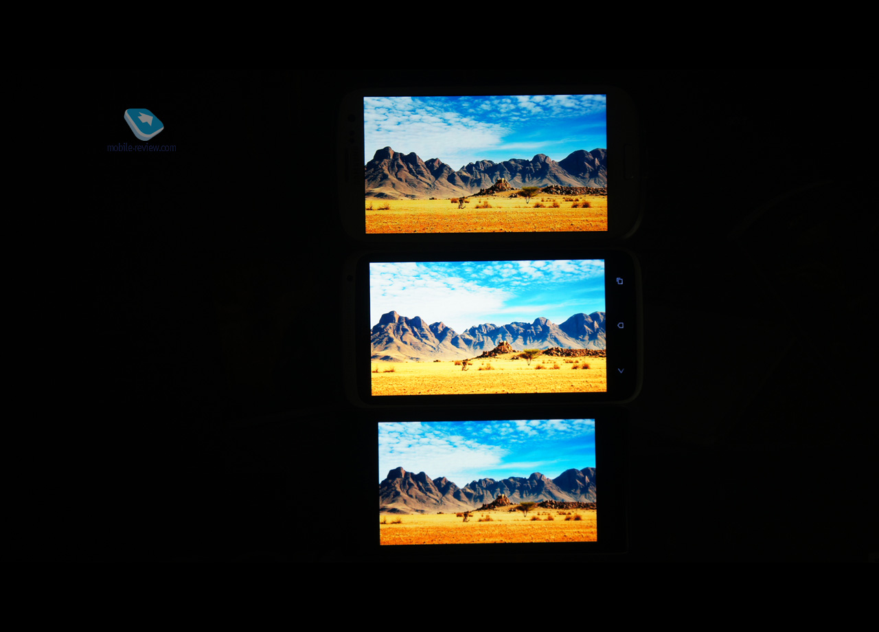 ![]() В устройстве есть трехосевые магнитометр (LIS303DLCH) и акселерометр (AK8975), а также гироскоп (L3G4200D). В целом отличный экран, с одной оговоркой: в результате применения матрицы с PenTile изображение кажется не таким четким, как например, на дисплеях с IPS-матрицей. Дисплеи Samsung Galaxy S III (сверху), HTC One X (в центре) и Huawei P1: