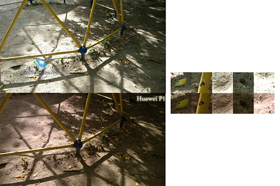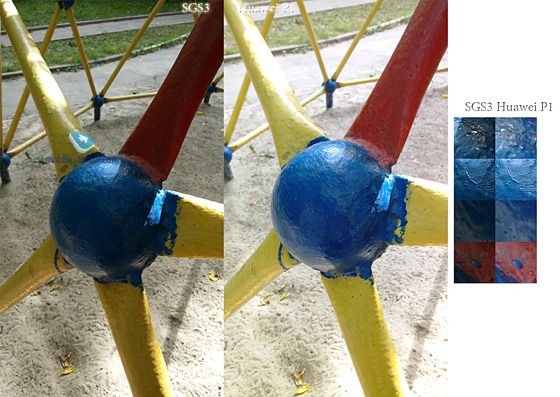 ![]() КамераВ смартфоне Huawei U9200 установлены две камеры: основная – 8 мегапикселей с автофокусом. Матрица камеры выполнена с применением технологии «задней подсветки» BSI («Back Side Illuminated» или «Back-alluminated sensor»), что позволяет снимать с минимальными шумами при невысокой освещенности. Суть заключается в том, что в обычном CMOS-сенсоре свет проходит сквозь металлическую сетку проводников и элементам схемы до того, как он попадет на фотодиоды. В BSI-сенсоре «проводка» спрятана за фотодиоды. Фронтальная камера на 1.3 мегапикселя без автофокуса. Присутствует двухсекционная светодиодная вспышка. Максимальное разрешение основной камеры – 3264х2448 пикселей, фронтальной – 1280х720 пикселей, максимальное разрешение видеороликов – 1920х1080 при 30 кадрах в секунду и монофоническом звуке. Качество фотокамеры очень хорошее: высокая детализация, в большинстве случаев правильный баланс белого, достаточно широкий угол обзора и большая светосила (f/2.4). Максимальное значение выдержки составляет 1/32, минимальное – 1/2000, ISO от 64 до 1000. Если сравнивать фото, получаемых с Samsung Galaxy S III и с Huawei P1, то, как ни странно, качество обеих камер будет примерно одинаковое. Смартфон P1 имеет даже меньшую дистанцию фокусировки (приблизительно 20 – 30 мм) и глубину резкости (красиво размывается задний план). Кстати, скорость фотокамеры Huawei тоже не сильно уступает скорости фотокамеры Samsung. Фото на Samsung Galaxy S III (слева) и Huawei P1: Видео смартфон записывает в разрешении FullHD. К сожалению, видеоролики записываются с небольшим подергиванием. Вначале сетовал на некорректную работу стабилизатора изображения, но после его отключения проблема не решилась. Интерфейс фоторежима: справа – переключение между фото и видео, активация затвора, вход в галерею; сверху слева – переключение фронтальная камера или основная, настройка вспышки; слева – режим съемки (один раз, группа, HDR, серия, улыбка, украшение, панорама и низкое освещение), эффекты (старое фото, холодный оттенок, теплый оттенок, негатив и т.д.), эффекты лица, настройки.
