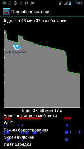 ![]() Углы обзора экрана Huawei P1 АккумуляторВ аппарате установлен несъемный литий-ионовый (Li-Ion) аккумулятор емкостью 1670 мАч. Молодцы, что в такой тонкий корпус уместили столь емкую батарею. К сожалению, официальных данных о продолжительности работы устройства от одного заряда батареи нет. По моим экспериментальным данным, в режиме разговора аккумулятор «сел» спустя примерно семь часов, в режиме проигрывания видео на максимальной яркости (высокий уровень звука, вывод на наушники) – разрядился примерно за 4 часа, на 40 часов хватило воспроизведения музыки в наушниках при высокой громкости и на 3.5 часа в режиме игр. В среднем время «жизни» батареи составило чуть менее суток. Моя схема использования P1 была следующей: 20-30 минут разговоров в день, около двух часов прослушивания музыки, около часа просмотра видео, столько же использования камеры, три часа работы с сетью Wi-Fi и 3G (Twitter, почта, Skype, установка приложений).