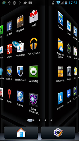 ![]() Во втором случае главный рабочий стол получает функции объемного перелистывания (два типа – вращение или панорама), на него назначаются трехмерные виджеты (погода, плеер, фотоальбом, календарь и электронная почта). Смотрится все это вполне оригинально и симпатично.