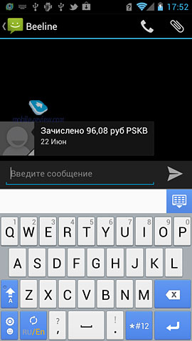 Вызовы и сообщенияДанные разделы не отличаются чем-то особенным (как функционально, так и внешне) от стокового Android 4.0 Ice Cream Sandwich, поэтому предлагаю прочитать подробнейший разбор полетов, пройдя по ссылке ниже: