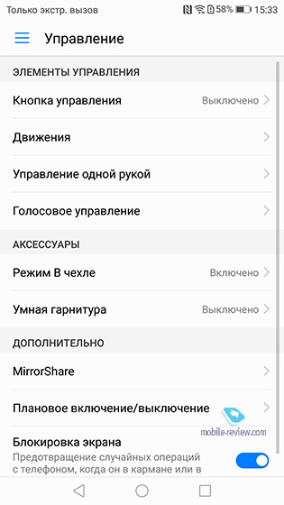 Система, конечно же, Google Android версии 7.0 с фирменной оболочкой EMUI 5.1. Одна из моих любимых UI – быстрая и с большим количеством полезных фишек: встроенные темы оформления, удобная работа с панелью уведомлений, возможность замены навигационных кнопок, разного рода управление движениями и жестами, значки пропущенных сообщений на иконках, значительное количество встроенных приятных мелодий звонков и звуковых эффектов.