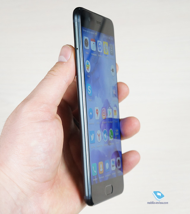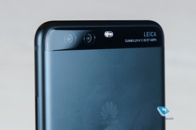 На нижнем торце – 3.5 мм, USB-C, микрофон и динамик громкой связи. Справа – кнопка питания в красном обрамлении, как и в P9 Plus, чуть выше – клавиша-качелька регулирования громкости. Слева – металлический слот для двух nano-SIM или одной nano-SIM и карты памяти microSD. Сверху находятся второй микрофон и ИК-передатчик. С обратной стороны – по-прежнему стеклянная вставка, в которую вписаны две камеры, вспышка, модуль лазерной фокусировки и надпись «Leica Summilux-H 1:1.8/27 ASPH» (в P9 Plus – «Leica Summarit 1:2.2/27 ASPH»).