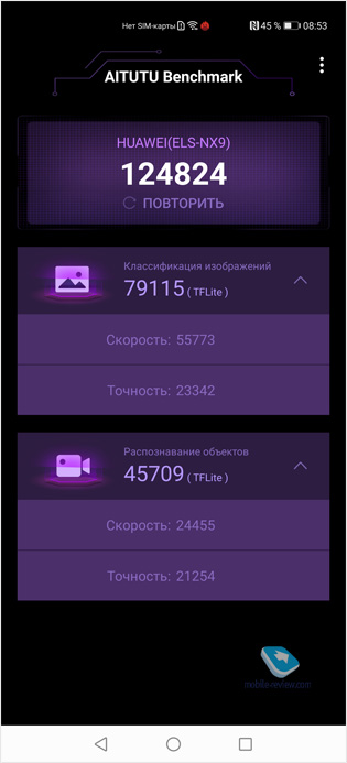 Внутри стоит Kirin 990 (7 нм), аппарат по умолчанию оснащен 5G, это часть системы. В России не работает, но когда появится, то можно будет включить и 5G. В синтетических тестах смартфон показывает неплохой результат.