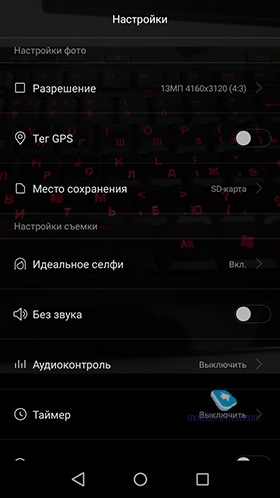 Встроенной памяти 16 ГБ, однако для пользователя доступно только 10 ГБ. Есть слот под карту памяти microSD. Максимальный объем – 32 ГБ. КамерыОсновной модуль на 13 МП (диафрагма F2.0, угол 27 мм), фронтальный – на 5 МП (диафрагма F2.4, очень широкий угол 22 мм). Как мне кажется, здесь стоят точно такие же модули камер, как и на Huawei 4X, по крайней мере, совпадают параметры, «рисунок» кадра похожий. Возможно, немного поколдовали над программным обеспечением. Напомню, что в P8 стоит четырехцветный RGBW-сенсор от Sony и есть оптическая стабилизация. Посмотрев кадры со старшей модели, могу сказать, что снимает она ненамного лучше младшей. Да, есть небольшие отличия: чуть четче, чуть приятнее цвета, чуть ярче картинка. Однако определить на глаз, где кадр с P8, а где с P8 Lite, практически невозможно. И это хорошо для последнего. Фокус быстрый, достаточно точный, баланс белого ошибается редко. В настройках есть несколько режимов: выбор точки фокусировки уже после съемки кадра, «удачное фото» – выбор лучшего снимка после серии кадров, HDR, «фотошоп» (так назвал я) – корректирует овал лица, сглаживает морщины и прочее. «Фронталка» снимает неплохо, но при недостаточном уровне освещения страшно «шумит». Видео ничем не примечательно: FullHD при 30 кадрах в секунду. Изображение хорошее, но не более того.