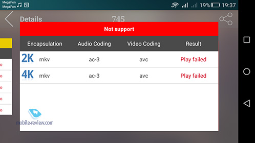 Возможности проигрывания видео протестированы программой Antutu Video Tester.