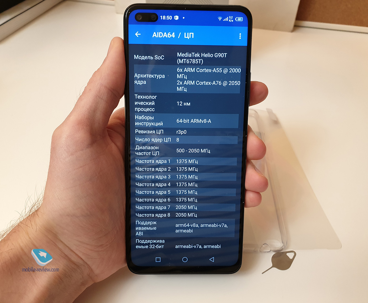 Двойная фронтальная камера элегантно вписана в экран, а рамки вокруг 90 Гц IPS LCD экрана очень тонкие