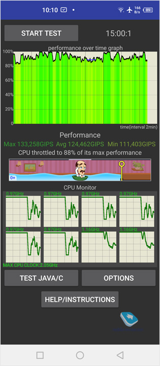 Другой важный момент – это жидкостное охлаждение. Учитывая мощный чипсет, оно необходимо, чтобы не было эффекта тротлинга, то есть чтобы производительность не падала под нагрузкой. Под нагрузкой производительность Infinix Zero 8 практически не снижается, благодаря чему можно не опасаться проседания частоты кадров в играх.