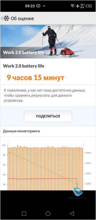 БатареяПринимая во внимание мощный чипсет и громадный экран с разрешением 2460 на 1080 точек, легко подумать, что в плане автономной работы Infinix Zero 8 звёзд с неба не хватает. Однако это не так. Во-первых, у смартфона высококачественная батарея отличной ёмкости 4 500 мАч. К слову, если вас смутил эпитет про качество батареи, то это не для красного словца. Косвенно о надежности батареи говорит хотя бы тот факт, что смартфон поддерживает 33 Вт быструю зарядку. А такую мощность могут выдерживать только высококачественные батареи. Во-вторых, чипсет смартфона сделан по энергоэффективной технологии 12 нм. В-третьих, в аппарате установлена свежая версия Android 10 и в целом высокий уровень оптимизации. Всё это позволяет получить по-настоящему отличные результаты в тестах на время автономной работы. Если включить высокую частоту обновления экрана 90 Гц, то можно рассчитывать на 15 – 15.5 часов просмотра видео или обновления веб-страниц по Wi-Fi на максимальной яркости экрана. При 60 Гц показатели становятся ещё более впечатляющими – почти 17 часов. В тесте PC Mark, который имитирует повседневную нагрузку (браузер, видео, документы и т.д.) смартфон продержался 9 часов 15 минут (максимальная яркость, включен Wi-Fi и мобильная сеть). Соответственно, это те значения, на которые пользователь может рассчитывать в быту. 9 часов экрана – это 1.5-2 дня работы от одного заряда.