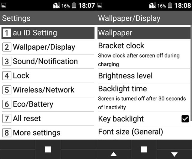 То же самое относится и к Infobar xv. За его основу была взята Android раскладушка Gratina KYF37 от Kyocera. Именно эта компания занималась воплощением инженерной мысли и дизайнерского полета фантазии. Добавили лишь некоторые фирменные фишки (удаленное управление голосовыми помощниками Google/Siri на смартфонах, живые обои в виде оригинальных аналоговых часов, иконки основного меню, мелодии звонков и смс и еще всякого понемногу). К великому сожалению, Kyocera не предусмотрела наличия защиты от воды и пыли, к которой уже давно привыкли владельцы японских телефонов. Но на это были свои причины, о которых я расскажу чуть позже. Характеристики моноблока просты до безобразия: бюджетный четырехъядерный процессор Qualcomm 210 с частотой 1.1 ГГц, связка памяти 1 ГБ/8 ГБ, не сенсорный 3.1-дюймовый дисплей, единственная 8 МП камера и батарейка на 1500 мАч. Почему-то было принято решение добавить FM-радио. Ни в одном современном японском мобильном телефоне нет FM-радио.