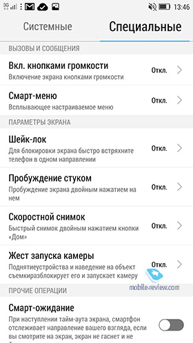 Выпадающая верхняя шторка имеет ряд быстрых переключателей, они логичны и красивы, настроить панели можно по своему вкусу. Также вы можете настроить всплывающее меню для быстрого запуска Камеры, Калькулятора, Списка запущенных приложений, Музыки плюс добавить туда свои программы. Многим может не понравиться полупрозрачная клавиша, которая всегда висит на экране, так вот ее можно убрать. Тогда будет достаточно нажать на свободное место, туда, где нет элементов управления, и это меню появится. Удобно и просто. Как обычно в Android, можно выбрать приложения, для которых будут выводиться уведомления, но также можно указать приложения с максимальным приоритетом. Из приятных мелочей отмечу возможность выводить скорость текущего соединения (Кб/c, Мб/с) в статусной строке. Батарейка также может показываться как в процентах, так и только в графическом отображении. В настройках скрывается целый набор функций, которые характерны только для Lenovo и не входят в стандартный набор на других Android-смартфонах. Например, для Wi-Fi-сетей есть «привязка Wi-Fi». Эта функция позволяет запоминать местоположение Wi-Fi-сети и автоматически переключаться на нее, когда вы попадаете в это место. Довольно удобная штука, к которой моментально привыкаешь. Для контактов можно установить полноэкранное фото при звонке (как входящем, так и исходящем). Телефон может включаться и выключаться по расписанию. Присутствует Lenovo ID, при включении которого вы автоматически получаете возможность архивировать свои настройки в облаке, также сохраняются ваши пароли от других социальных сетей, добавляются новые возможности синхронизации. Необходимости использовать Lenovo ID нет, это дополнительная опция. Диспетчер питания, это утилита для управления батареей – вы можете включить режим максимального энергосбережения, умную экономию для экрана и графического процессора, ряд других настроек – также тут можно посмотреть, какие приложения тратят энергию больше других, а также какие компоненты устройства, ответственны за повышенный расход энергии. Иногда информация обновляется в этом разделе не моментально, что ставит в тупик. Но в целом это неплохая замена стандартной функции в Android, пусть и не стопроцентно удобная, один из немногих случаев, когда отображение по умолчанию мне нравится больше.