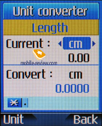 Инструменты. Здесь находится обычный калькулятор, конвертер единиц измерения, мировое время, а также диктофон (только режим ожидания, до 19 секунд на запись). Из этого же меню можно просмотреть общее состояние памяти. ![]()