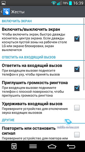 Система экранных жестов – не отличительная особенность LG G2, она есть и в некоторых смартфонах других производителей, но вместе с предыдущими «фишками» хорошо расширяет возможности по настройке управления смартфоном лично под вас.