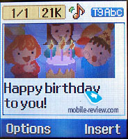 ![]() Компания LG решила представить в среднем сегменте модель традиционного дизайна, которая приходит на смену LG G5300. Функционально этот аппарат чрезвычайно напоминает модель LG G5400 и это не мудрено, ведь телефоны построены на одной и той же платформе. По дизайну аппарат необычен, он выполнен в виде бруска с округлой нижней частью. Дизайн запоминается сразу, эту модель спутать с какой-то другой невозможно. Традиционно будет доступно несколько различных цветов, в частности, синий, красный, серый. ![]() Размеры аппарата 106 x 42 x 21.5 мм типичны для телефонов этого класса, также как и его вес в 85 грамм. Экран в данной модели имеет разрешение в 128х128 точек и отображает до 65000 цветов. Он выполнен по UFB-технологии, на солнце экран виден, хотя картинка сильно выцветает. На экране помещается до 5 строк текста и одной служебной строки. Качество экрана заслуживает похвалы, он неплох в своем классе. ![]() Клавиатура выполнена из пластика, есть вертикальная клавиша прокрутки с вписанной в нее клавишей С. Такой тип расположения клавиш не совсем удобен, особенно с учетом примыкающих клавиш посыла вызова, отбоя и софт-клавиш. В то же время цифровая клавиатура достаточно удобна, клавиши хорошо разнесены. Подсветка клавиатуры белого цвета, она яркая. ![]() На нижнем торце располагается интерфейсный разъем, в то время как на верхнем разъем для подключения гарнитуры, отверстие для ремешка. На задней поверхности вы можете увидеть отверстие выделенного динамика для воспроизведения мелодии звонка. В модели отсутствует ИК порт, разработчики посчитали его излишним для аппарата среднего класса. В телефоне применяется литий-ионный аккумулятор емкостью 760 мАч. По заявлению производителя он способен обеспечить до 230 часов работы в режиме ожидания и до 3 часов работы в режиме разговора. В условиях московской сети МТС аппарат работал в среднем около 3-3.5 суток при 30 минутах разговоров и минимальном использовании других функций (около 15 минут). Время полной зарядки аккумулятора порядка 1 часа 45 минут. МенюГлавное меню представлено вертикальным набором пунктов, а все подменю списками. Главное меню расширилось за счет пункта Java, он восьмой по счету. Есть быстрая навигация по меню с помощью цифровых последовательностей. ![]() Телефонная книга. В памяти телефона можно сохранить до 200 имен, для отдельного имени есть до 5 полей (4 номера, один адрес эл. почты), а также вы можете выбрать группу абонентов и иконку. Под иконкой имеются в виду предустановленные в аппарате смешные картинки лиц людей и животных, они чрезвычайно разнообразят аппарат. При звонке на экране соответственно будет отображаться выбранная вами картинка, помимо имени абонента. ![]() ![]() ![]() ![]() При вводе информации вам придется изначально выбрать главный номер, затем уже вносить последовательно другие номера, правда, через них можно и перескакивать. В общем списке могут отображаться телефоны как из памяти SIM-карты, так и памяти телефона. Всего в аппарате 7 групп абонентов, для каждой можно указать свой тон звонка, назначить иконку (уже другой набор картинок). До 10 записям в телефонной книге можно назначить голосовые метки, распознавание работает хорошо, при попытке записи одинаковых меток аппарат предупреждает об этом. Сообщения. Аппарат поддерживает стандарт EMS, что позволяет вкладывать в сообщения картинки, мелодии, форм