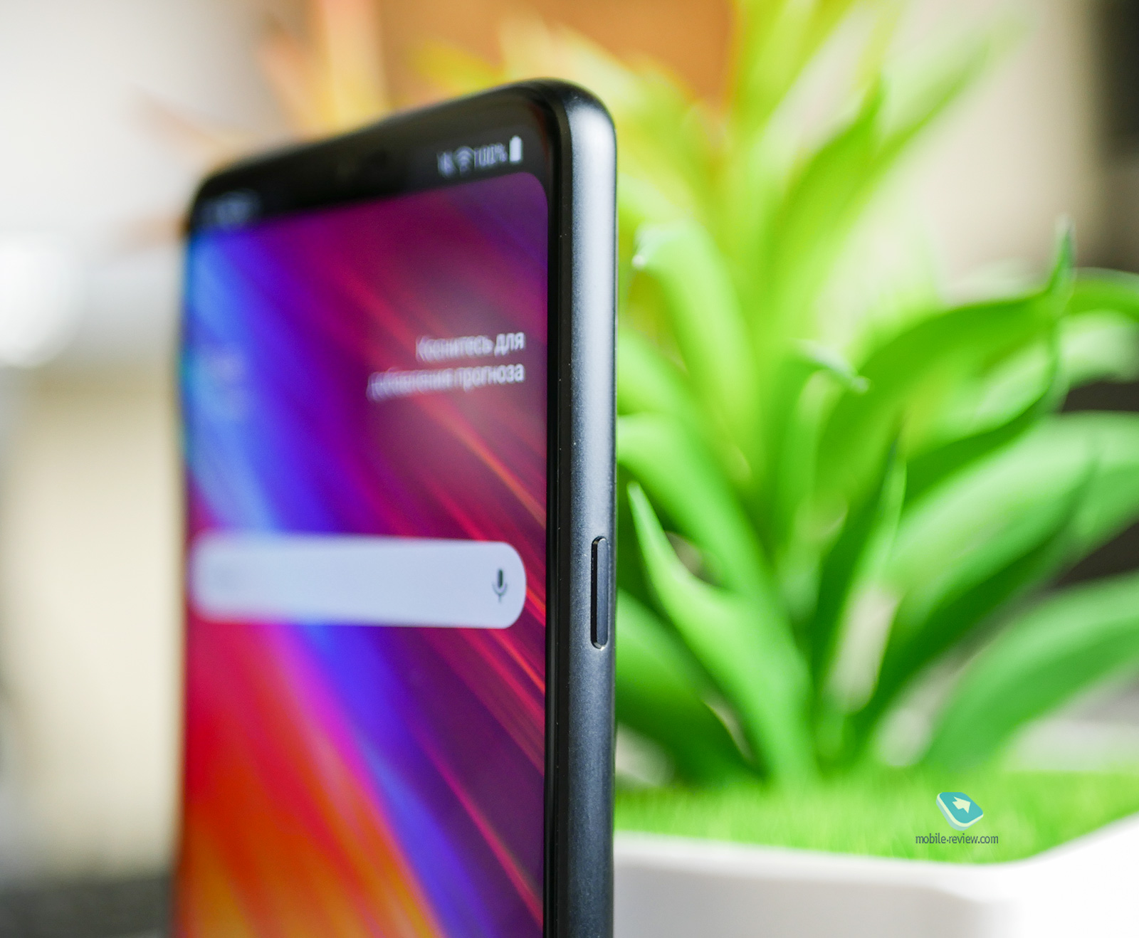 Из примечательного, но уже традиционного для компании LG: модель G7 Fit защищена от воды и пыли по стандарту IP68, кроме того, получила сертификат Military Standard 810G. Для современных устройств это просто необходимые вещи. Учитывая, что последние поколения смартфонов стандартно стали получать экраны 6.2 – 6.4 дюйма, G7 Fit со своими параметрами 153 × 72 × 7,9 мм смотрится вполне компактным устройством. Еще раз повторю: учитывая довольно крупные габариты большинства современных аппаратов. Олеофобное покрытие с тыльной стороны низкого качества, поэтому будьте готовы к тому, что оно постоянно будет заляпано вашими пальчиками. Стекло на лицевой части устройства имеет качественный слой, отпечатки почти незаметны. Больше особо нечего сказать о внешнем виде LG G7 Fit – он обычный и привычный, увы, ничем не примечательный. На его фоне разного рода Huawei/Honor выглядят просто конфетками. Впрочем, на вкус и цвет…,/ Сверху на фронтальной части устройства – индикатор пропущенных событий (мигает редко, светит слабо), датчики освещения и приближения, камера и речевой динамик. Он громкий, слышно четко и разборчиво, тембр уходит в низкие частоты, хватает и высоких частот. В целом, динамик качественный, мне понравился. На нижнем торце – 3.5 мм аудиовыход, основной микрофон, USB Type-C и три небольших отверстия, где прячется динамик громкой связи. На правом торце – металлическая кнопка питания (плоская и маленькая, с минимальным ходом и четким нажатием), а слева – такого же типа две отдельные клавиши регулировки громкости.