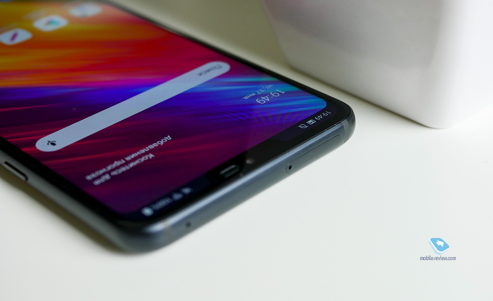 ПозиционированиеСмартфон G7 Fit компании LG Electronics был представлен на ежегодной выставке CES в огромном павильоне с роботами, телевизорами с искусственным интеллектом и огромными стенами из OLED-панелей. Собственно, об этом писал Евгений Вильдяев, а я снимал несколько видеороликов для нашего канала. Буквально на днях LG G7 Fit добрался и до нашей редакции, поэтому я сразу занялся этим устройством. Первое впечатление от новинки - «франкенштейн», потому что собран из разных компонентов разных лет: тут тебе и современная технология с вырезом в экране, и Boombox динамик от LG G7, и процессор 2016 года (Qualcomm Snapdragon 821), и небольшое количество встроенной памяти (32 ГБ, а доступно 15 ГБ), всего лишь одна основная камера в 2019 году. Впечатление, что было необходимо создать новый продукт, но некоторые важные компоненты отсутствовали. Более того (только не падайте в обморок!), LG оценили смартфон в 24 990 рублей. Впрочем, оказалось, не все так плохо: в G7 Fit «завезли» крутую матрицу экрана с QHD+ разрешением, корпус собрали по военному стандарту MIL-STD810G со степенью защиты IP68, затолкали в аппарат Bluetooth версии 5, чип NFC и скоростную память. Позиционирование LG G7 Fit простое: упрощенный флагман LG G7 ThinQ. Единственное, что печально, так это отсутствие второй широкоугольной камеры. Еще раз повторю, что сейчас LG G7 Fit в черном цвете можно купить за 24 990 рублей. Дизайн, размеры, управляющие элементыКомпания LG позаимствовала внешний вид G7 Fit у флагманской модели G7 ThinQ. Детально описывать не стану, скажу лишь, что телефоны почти не отличаются друг от друга. Наверное, это хорошо с точки зрения маркетинга, однако G7 Fit выглядит довольно просто, если не сказать, примитивно: корпус только черного цвета, задняя панель глянцевая, обильно покрывается отпечатками пальцев, и мелкое «ночное небо» (так я называю вкрапление голубых блесток в корпус) становится совершенно незаметным. Ну а лицевая панель – как у всех.