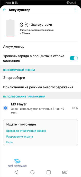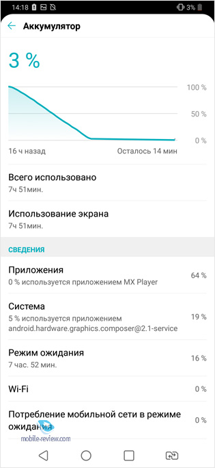 Время работыВ данной модели используется аккумулятор емкостью 3000 мАч. По современным меркам это значение ниже стандартных 3200-3400 мАч. Время проигрывания видео на максимальной яркости составляет около 8 часов, игры разряжают аккумулятор примерно за 6 часов (простые) и за 4 часа (сложные).