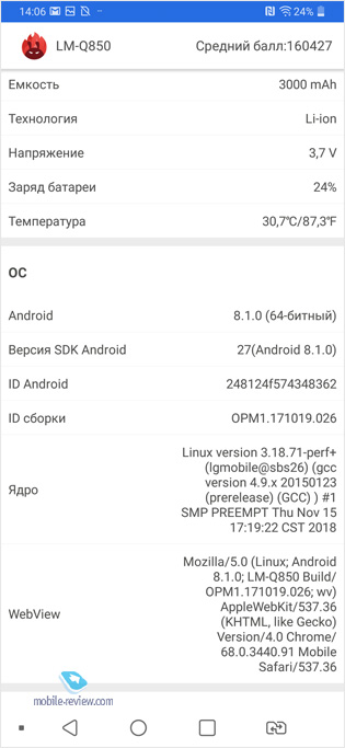 Телефон работает под управлением операционной системы Google Android версии 8.1 и на фирменной оболочке LG UX.