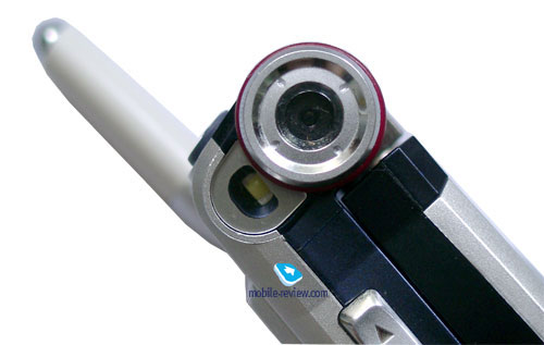 Volume key is placed on the left-hand side; a special key for a digital camera is located on the right-hand side. IrDA is situated here too. The camera is built-in the hinge of the phone, you can see a lens and a special flash-window. This construction is controversial, because the camera is located in unusual way, across the phone, we do not get used to hold so the handset.