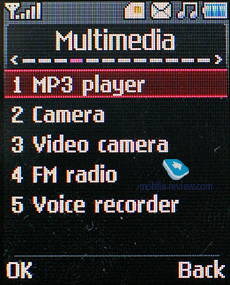 Здесь же находятся настройки сети GSM, где можно выбрать предпочтительную сеть, а также установить автоматический или ручной выбор сети. Здесь же находятся настройки GPRS. В этом же разделе имеется возможность выбрать тип соединения при подключении телефона к ПК, это модем или съемный диск. ![]() Мультимедиа. В данном разделе находится MP3-плеер, FM-радио, камера и видеокамера, о которых уже говорилось выше. Здесь же находится диктофон, он может работать только в фоновом режиме, запись разговора с его помощью невозможна. Продолжительность записи ограничена только свободной памятью аппарата, но возможно выставить и ограничение, для того чтобы запись можно было в последующем отправить по MMS. ![]() Редактор мелодий позволяет создавать свои мелодии на нотном стане, функция не слишком нужна для подавляющего большинства пользователей. Радио не может работать в фоновом режиме, память аппарата рассчитана на сохранение в ней до 10 радиостанций. Предусмотрена ручная настройка радиостанций и автоматическая, поддержка RDS не реализована, присвоение имени возможно каналу из меню редактирования. В качестве антенны используется провод стереогарнитуры из комплекта, качество приема у FM-радио телефона хорошее. Звук радио может воспроизводиться как через проводную гарнитуру и наушники, так и через динамик аппарата.