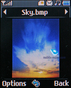 Мои папки. Простой файл-менеджер, в котором можно просмотреть информацию, хранящуюся как в памяти аппарата, так и на карте памяти. К сожалению, на просмотр в аппарате имеются ограничения, так, в данном файл-менеджере отображаются только папки, созданные телефоном (Изображения, Звуки, Видео и Другие), то есть увидеть информацию, сохраненную в другой папке, которая по имени отличается от установленных аппаратом, никак нельзя. Файл-менеджер поддерживает простые действия с объектами, это копирование и перенос, сортировка объектов по имени, дате или типу файлов, а также переименование файлов.
