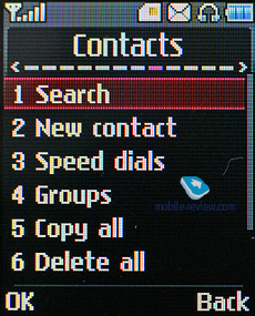 Телефонная книга. В памяти телефона может храниться до 1000 контактов. Для каждого можно записать имя, до четырех телефонных номеров с возможностью выбора типа номера (мобильный, домашний и т.д. и т.п.), адрес электронной почты, дату рождения и небольшую текстовую заметку. Кроме этого, контакту можно присвоить собственный сигнал вызова и картинку/видео, а также добавить его в одну из групп. При соотнесении фотографии с именем есть и другая опция: создать самостоятельно аватар, придумать человечка, меняя его одежду, лицо и так далее. Для молодежи интересная опция, которая разнообразит аппарат.